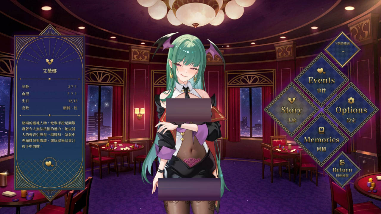 游戏中还包含10张动态HCG,这些精美的画面将魅魔的诱惑与角色间的甜蜜互动展现得淋漓尽致。魅魔女荷官的调皮挑逗,每一个眼神、每一个动作都充满了暧昧的气息;两位神秘角色也有着独特的魅力,他们的出现为游戏增添了更多的神秘色彩。每一次与这些角色的互动,都充满了惊喜与暧昧,让玩家仿佛置身于一个充满爱意与诱惑的梦幻世界。